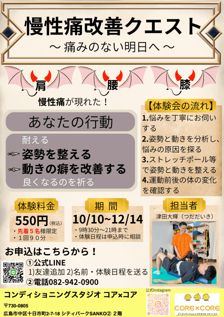 どうすれば体の調子が良くなるのか分からないとお悩みでしたら、体験会で解決の可能性を感じていただけると嬉しいです!
