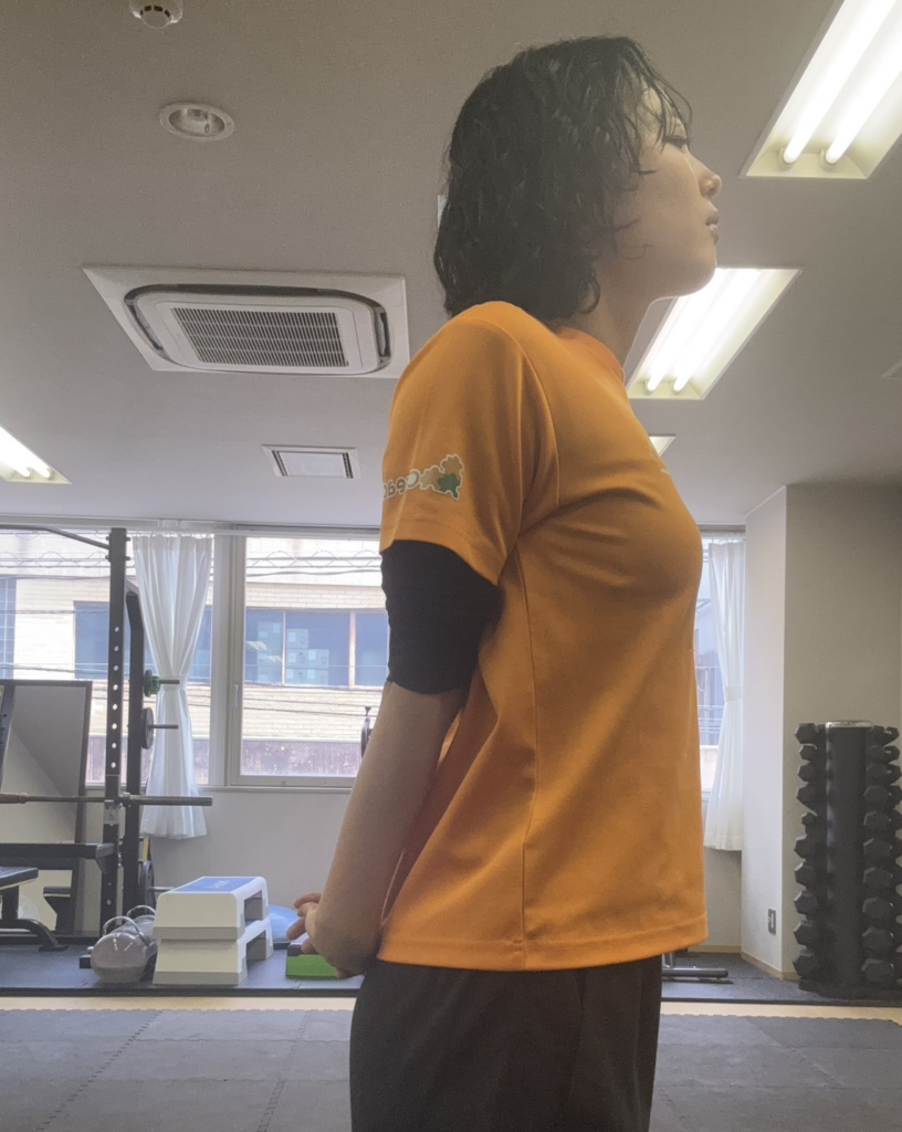 また肩甲骨は、本来横から見た時にペタッと背中にくっついていて、平らな状態であることが、正しい位置関係になります。