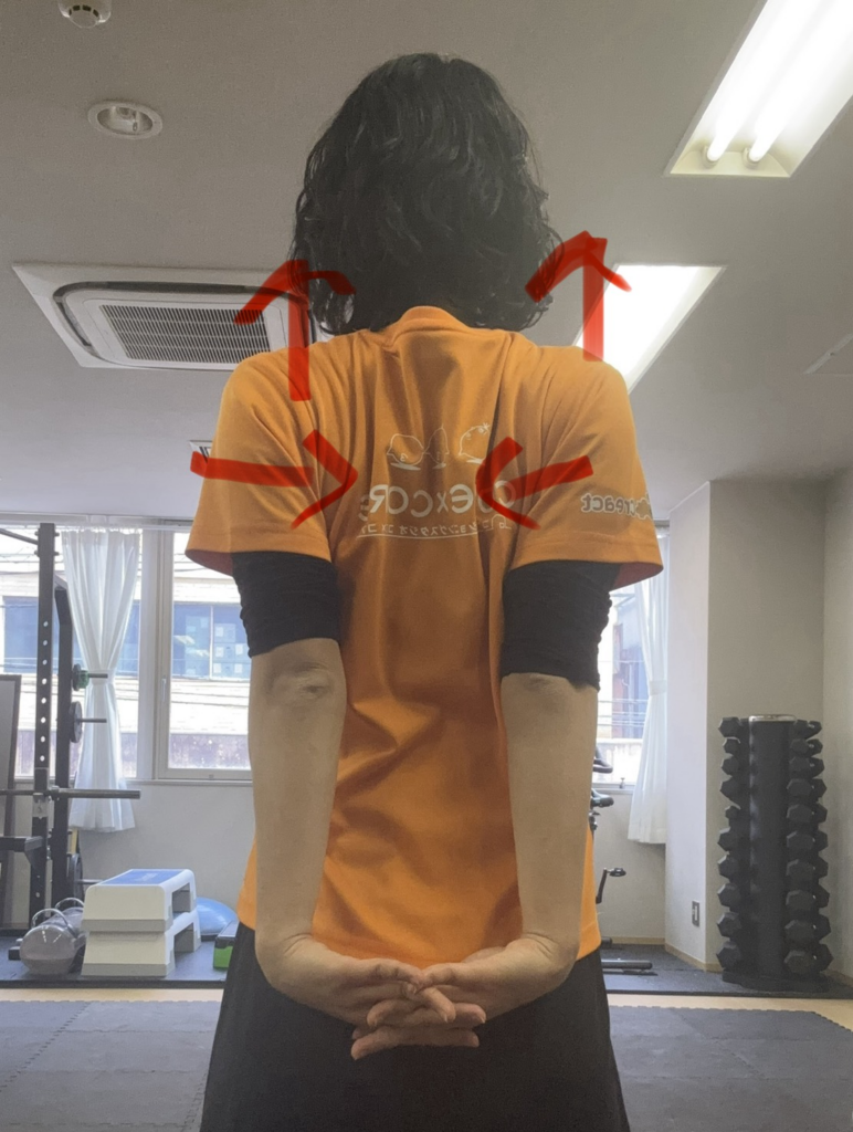 よく見るのが、肩甲骨が浮いている状態。こんな感じです↓
